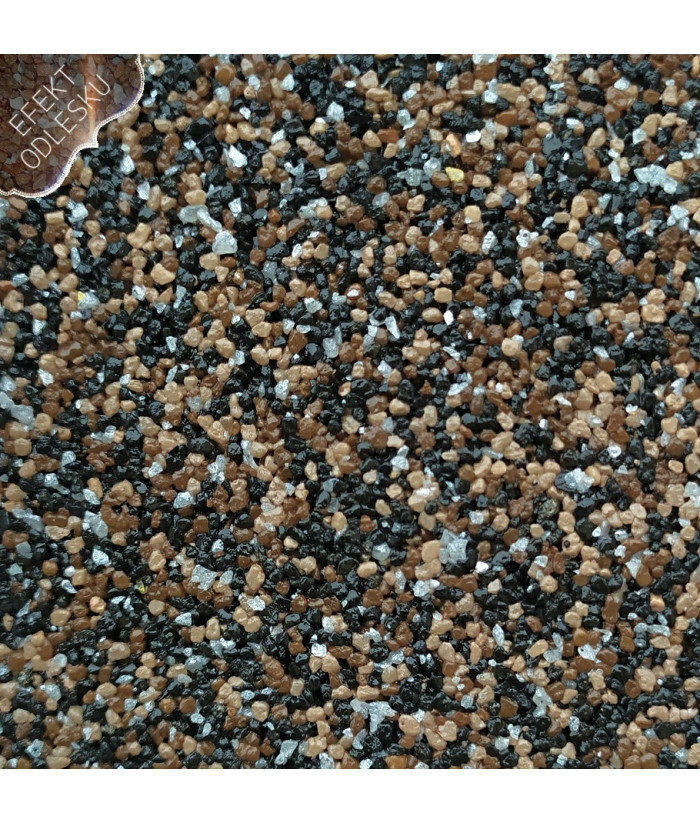 Ušlechtilý druh pastovité dekorativní omítky vzniklý směsí speciálního organického pojiva, kamínku a barveného skla dle odstínu